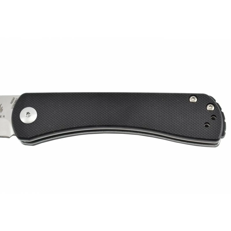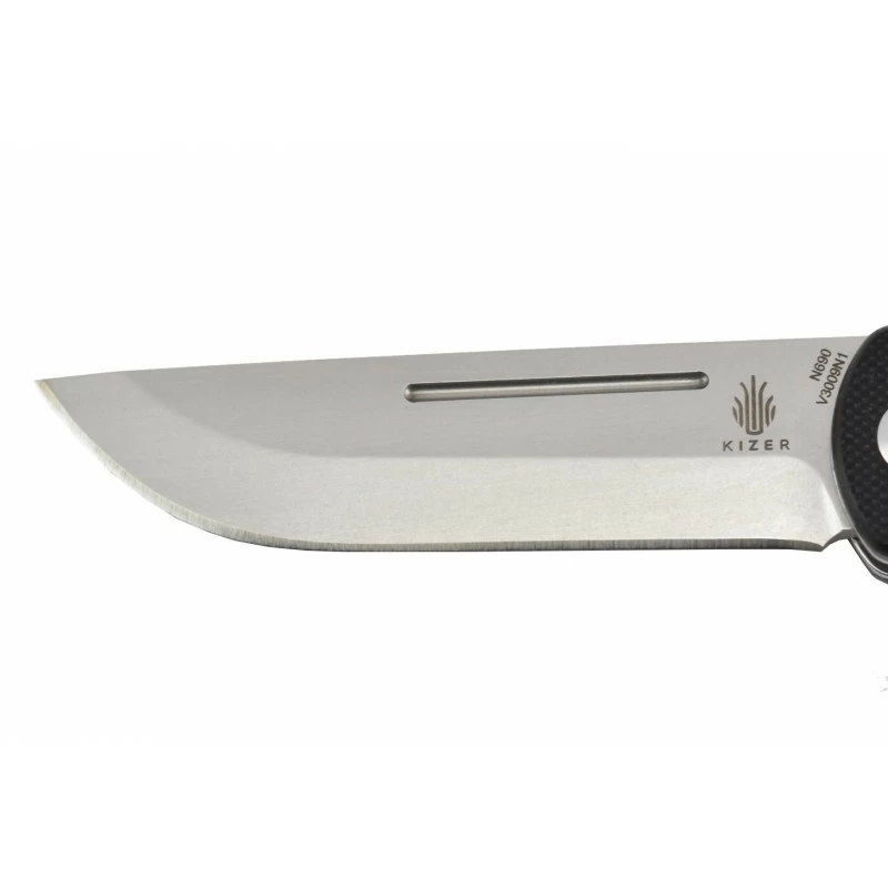 Le couteau Kizer Vanguard Pinch V3009N1 dispose d’une lame de 76mm de long, en acier Bohler N690 (Ă©paisseur 3mm). Tranchante, elle est bien sĂ»r dĂ©corĂ©e par le logo Kizer (fabricant Chinois) ainsi que personnalisable via gravure (voir bouton ci-dessous). Un couteau pliant, utilisable des deux mains, qui s’avère donc ĂŞtre ergonomique, performant et dotĂ© d’un design simple mais efficace. Une valeur sĂ»re !