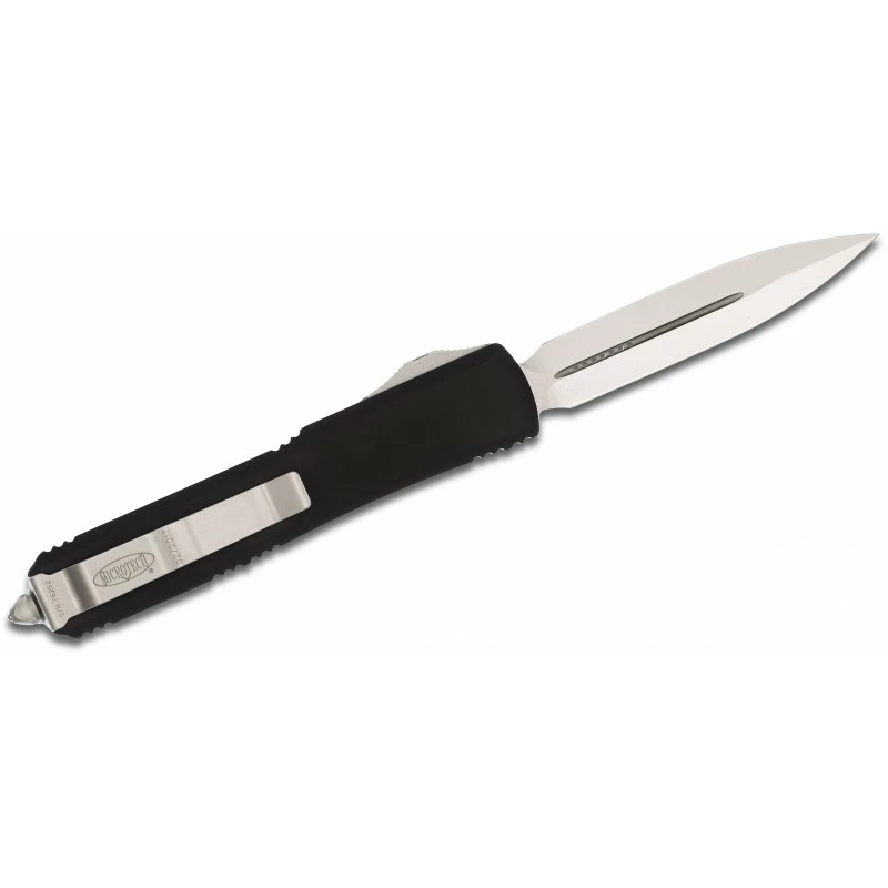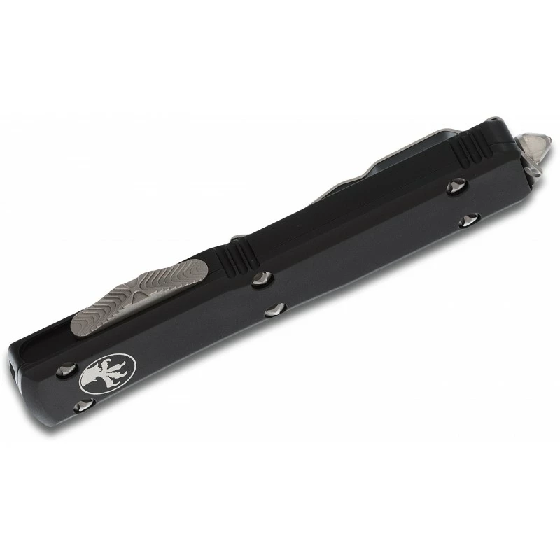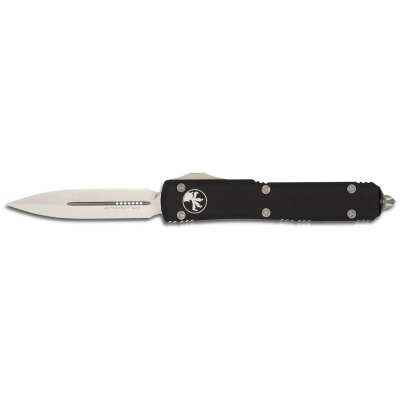 Le Microtech 122-4 Ultratech est un couteau automatique OTF (Out The Front) : cela signifie que l’Ă©jection de lame se fait par l’avant. FabriquĂ© Ă 100% aux USA, ce modèle est de très grande qualitĂ© et par consĂ©quent extrĂŞmement fiable. CĂ´tĂ© manche, il est fabriquĂ© en aluminium anodisĂ© noir (6061-T6) et mesure 12cm de long afin de garantir une facilitĂ© de transport quotidienne. Il faut mentionner la prĂ©sence du logo Microtech en blanc afin de parfaitement ressortir par effet contrastĂ©. Pour que la transportabilitĂ© soit la meilleure possible, le couteau automatique Microtech Ultratech 122-4 intègre Ă©galement un clip de poche au dos de la poignĂ©e noire. Ă€ double tranchant, la lame de 86mm est ajourĂ©e par 7 petits trous avec juste en-dessous l’inscription « ULTRATECH D/E« . On peut aussi observer au niveau du coin supĂ©rieur le texte « USA » faisant rĂ©fĂ©rence Ă la fabrication 100% AmĂ©ricaine. Simple d’utilisation, ce couteau automatique Microtech 122-4 s’utilise de la façon suivante, il faut faire coulisser le bouton pour dĂ©ployer la lame Ă l’avant (système OTF). Un excellent tranchant qui vous permettra de surmonter tous les obstacles !