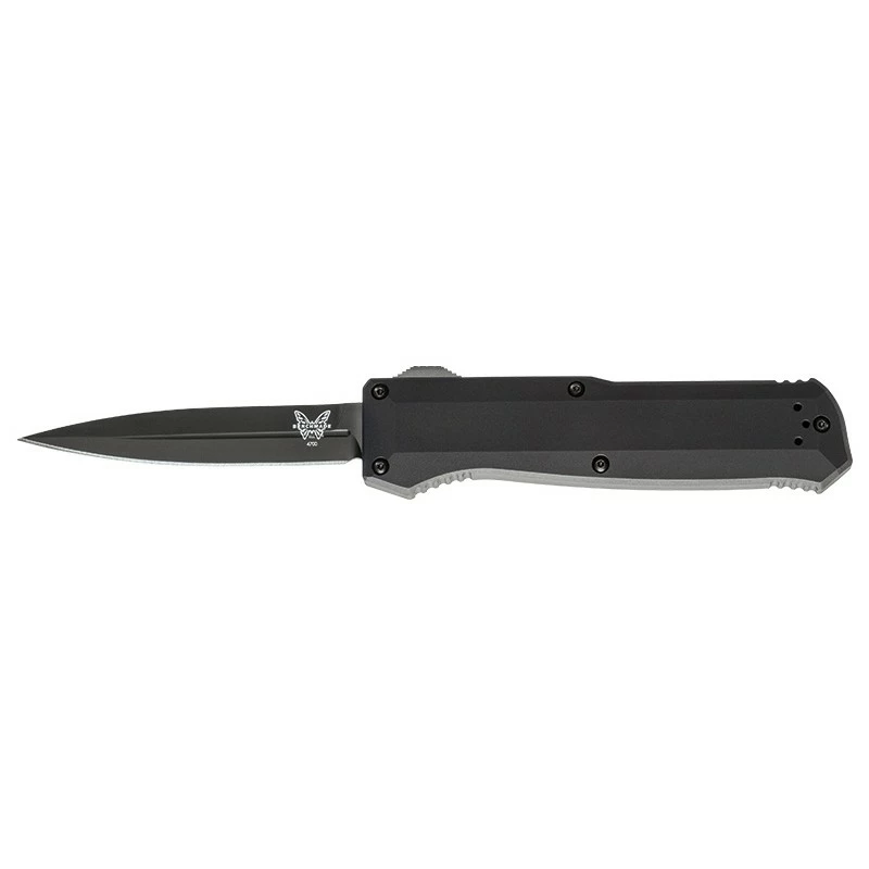 Avec sa poignée furtive noire en aluminium anodisé (6061-T6), le Benchmade Auto Precipice BN4700DLC arbore un look discret, qui passera presque inaperçu. Toutefois, discret ne veut pas dire inefficace, bien au contraire, car ce couteau automatique OTF (Out The Front) intègre une lame noire en acier inoxydable CPM S30V, de longueur 88mm, profil spear point. Une lame au tranchant lisse qui a l’avantage de résister à la corrosion, à noter qu’elle est à personnaliser (gravure), voir bouton ci-dessous. On peut également apercevoir le logo papillon de la coutellerie Américaine Benchmade. Couteau automatique OTF oblige, la lame s’éjecte par l’avant sous la simple commande du bouton poussoir situé sur le côté du manche. Cette ouverture automatique frontale assure une réactivité exemplaire en toutes circonstances. Grâce à sa longueur de 12cm en position fermée, le Benchmade Auto Precipice 4700DLC OTF s’avère être très transportable au quotidien, d’autant plus qu’il possède aussi un clip réversible. Couteau automatique tactique conçu et fabriqué aux USA par Benchmade.