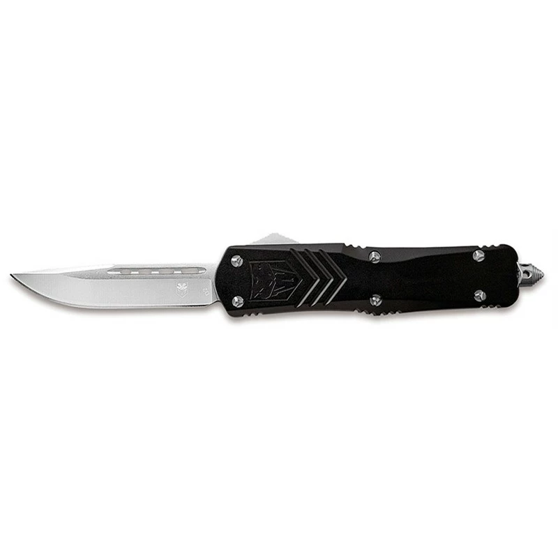 Ce couteau automatique OTF Cobratec Medium FS-X Black est garanti à vie, et très sécurisé. En effet, si la lame rencontre un obstacle durant son déploiement, l’éjection sera alors automatiquement débrayée. Côté manche, il est fabriqué en aluminium de qualité aéronautique, avec en guise de décor une nouvelle fois la présence du logo CobraTec. Usiné CNC, le manche noir est très élégant, et intègre un clip de poche ainsi que brise-verre pour les situations urgentes. De longueur 114mm en position fermée, le couteau automatique OTF Medium FS-X Black, signé CobraTec, vous est livré avec son étui en nylon noir. Ambidextre pour une simplicité d’utilisation à toute épreuve.