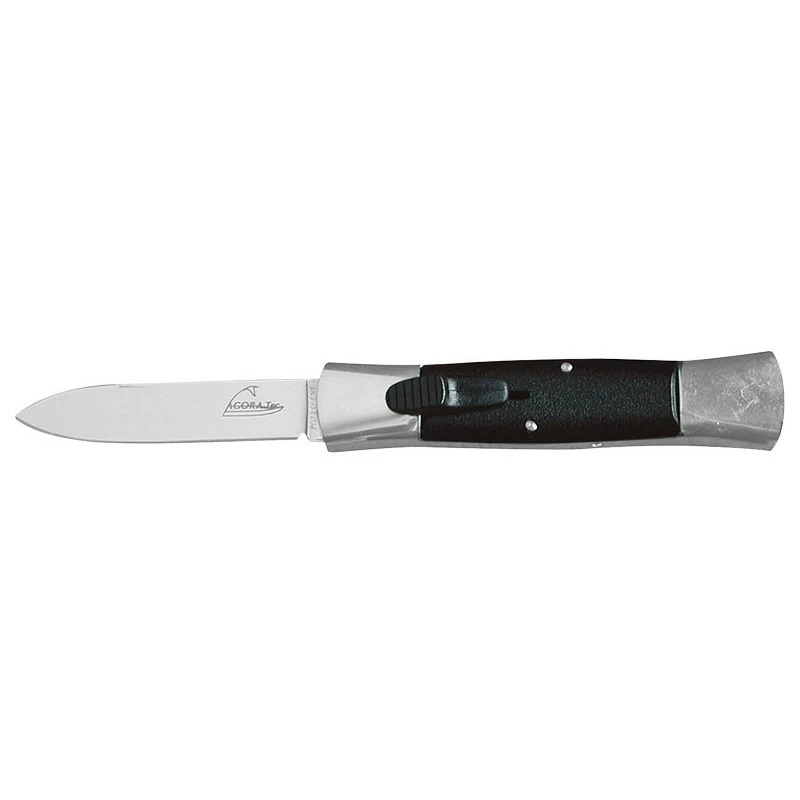 Le Consorzio Coltellinai Piccolo (rĂ©fĂ©rence 251L) dans sa version manche fabriquĂ© en rĂ©sine synthĂ©tique noire, avec mitres en argent au niveau des extrĂ©mitĂ©s. En plus d’offrir une prise en main ferme et agrĂ©able, cette poignĂ©e bicolore apporte Ă©galement une touche moderne/design très apprĂ©ciable. Le Consorzio Coltellinai Piccolo 251L est un couteau automatique OTF (Out The Front) que l’on aime regarder, admirer en raison de sa beautĂ©. Le système d’ouverture/fermeture de la lame est très simple, pour l’Ă©jecter, il suffit d’utiliser le bouton glissière situĂ© sur le manche. D’ailleurs, sachez que la lame de 7cm est fabriquĂ©e en acier inoxydable 440, profil spear point. Elle est Ă la fois tranchante ainsi que rĂ©sistante Ă la rouille (corrosion), possibilitĂ© de la graver par le texte de son choix, et cela, au niveau des deux faces (voir bouton ajouter une gravure ci-dessous). Couteau automatique OTF Consorzio Coltellinai Piccolo 251L conçu et fabriquĂ© Ă Maniago en Italie, existe aussi en version manche entièrement en synthĂ©tique.