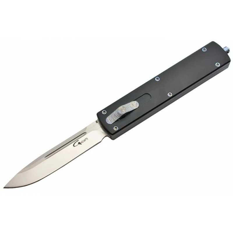 Le Golgoth G12+ est un couteau automatique OTF comme vous n’en avez jamais vu. Sa lame drop point est fabriquée en D2, un acier de qualité des plus tenaces et durables. De longueur 88mm, elle est enrichie d’une rainure ainsi que par le nom de la marque : Golgoth.