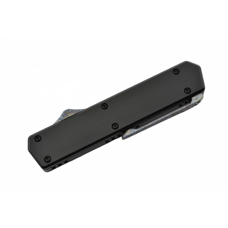 Offrant une réactivité à toute épreuve, le couteau automatique OTF Golgoth G13DP+ possède un manche noir en aluminium anodisé. Sa longueur de 115mm fait qu’il sera facilement transportable au quotidien. Il accueille un bouton à faire coulisser (servant à éjecter la lame) ainsi qu’un clip sur le côté, deux éléments en titane anodisé crazy. Cette anodisation apporte couleur et originalité : vous allez l’adorer !