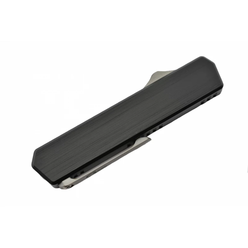 Le manche du Golgoth G13DT est fait d’aluminium anodisĂ© de couleur noire : il mesure 115mm de long afin de pouvoir ĂŞtre aisĂ©ment transportĂ© d’un point A Ă un point B. La poignĂ©e est bien sĂ»r dotĂ©e d’un bouton servant Ă Ă©jecter rapidement la lame droit devant ainsi qu’un clip latĂ©ral : ces deux Ă©lĂ©ments sont faits de titane robuste.