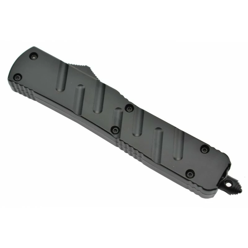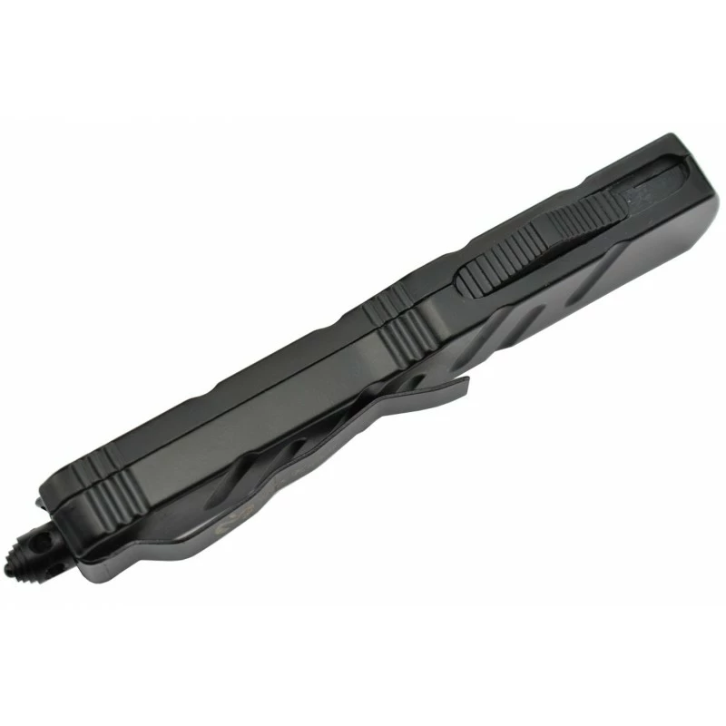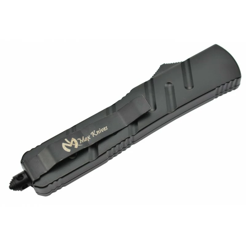 Le manche du couteau automatique OTF Max Knives MKO44 est fabriquĂ© en aluminium noir dĂ©corĂ© par de gĂ©nĂ©reuses rainures sur la partie basse comme sur la partie haute. Il intègre un trou pour dragonne, un brise-vitre ainsi qu’un clip ceinture noir au dos enrichi du dĂ©cor Max Knives. La longueur du manche est de 13cm, couteau automatique livrĂ© avec un Ă©tui cordura.