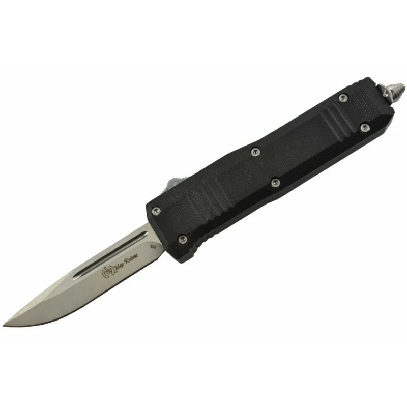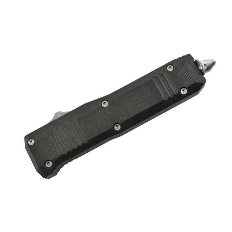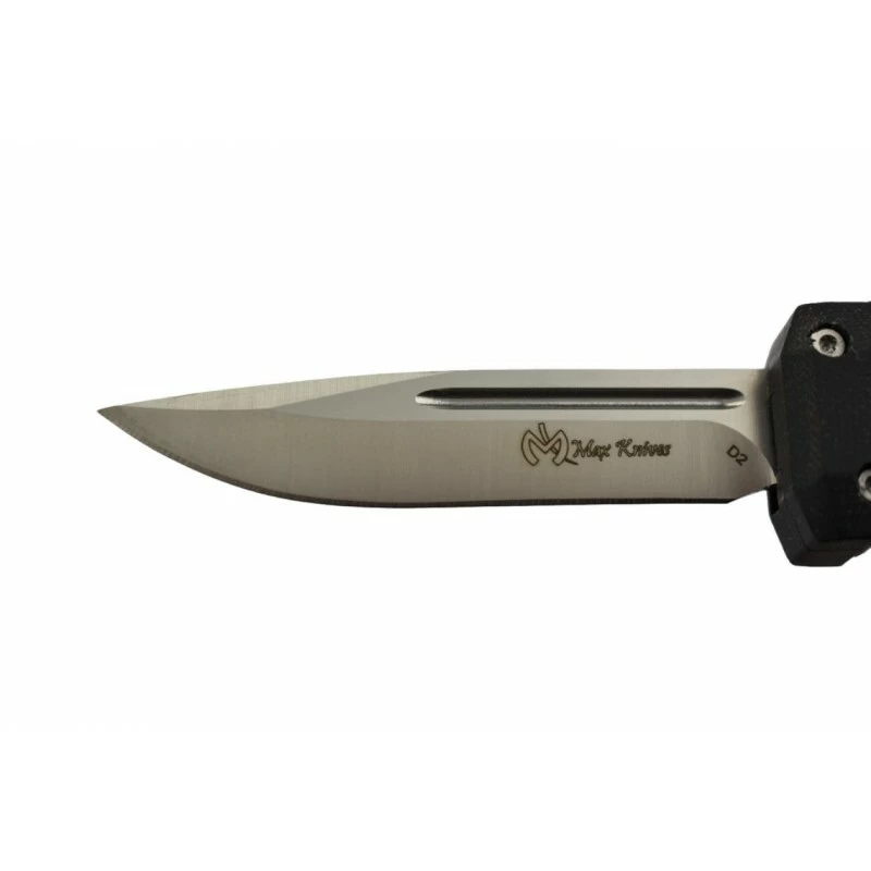 Le manche du couteau automatique OTF MKO4G10NDP Max Knives est conçu en G10 noir, matériau moderne convaincant aussi bien sur le plan esthétique que technique. Il loge un bouton poussoir à l’origine d’une ouverture de lame par l’avant, de façon extrêmement rapide. Avec clip-ceinture et orifice pour lanière améliorant encore un peu plus la transportabilité. Brise-vitre de 10mm en bout pour les situations d’urgence.