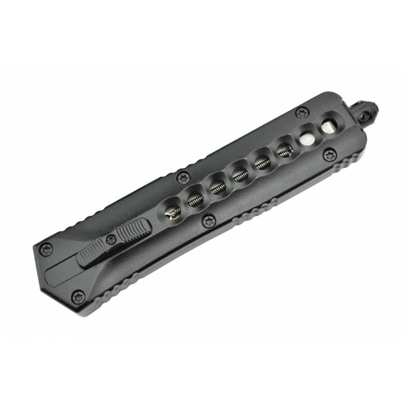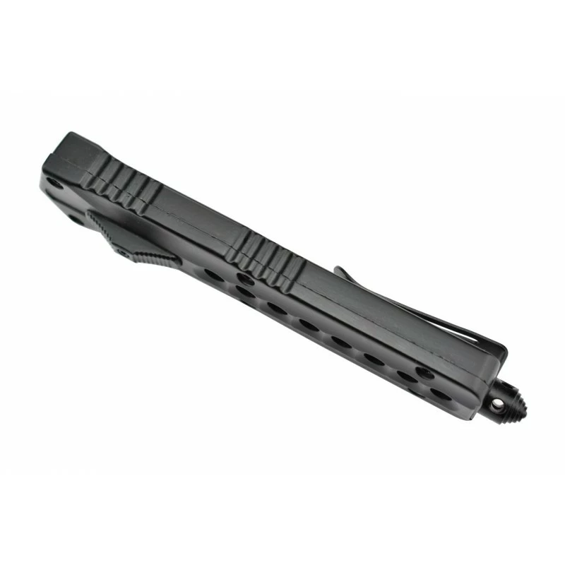 Le couteau automatique OTF Max Knives MKO5 dispose Ă©galement d’un manche en aluminium anodisĂ© noir comportant un bouton Ă utiliser pour Ă©jecter la lame avec rapiditĂ©. Confortable Ă prendre en main, la poignĂ©e noire mesure 138mm de long ce qui assure une facilitĂ© de port en toutes circonstances. D’ailleurs, il y a un clip de poche ainsi qu’un brise-vitre permettant d’intervenir en cas d’urgence. En plus, votre couteau automatique Max Knives MKO5 vous sera livrĂ© avec son Ă©tui ceinture en nylon noir (voir les diffĂ©rentes images du produit). Très pratique pour le rangement mais aussi le transport !