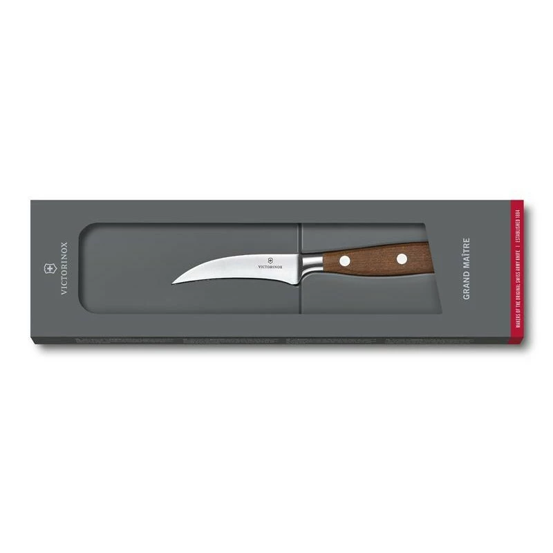 En cuisine, l’esthétique d’un plat est très important, car c’est lui qui donne envie de manger …. ou non ! Pour apporter une note élégante à vos aliments, il est indispensable d’avoir un outil permettant de les travailler minutieusement, ou encore avec précision si vous préférez. Ce couteau bec d’oiseau Victorinox 7.7300.08G appartient à la série Grand Maître de la marque Suisse, il possède une lame courbe de 8cm de long, en acier inoxydable, forgée pour une solidité extrême. Précisons tout de même le fait que la forge est réalisée en Allemagne à Solingen. Ce couteau bec d’oiseau va permettre au cuisinier, professionnel ou amateur, de révéler son âme d’artiste via la décoration, l’embellissement des aliments. Pour un repas beau à voir, et délicieux en terme de goût ! Ce modèle Victorinox 7.7300.08G possède aussi un manche riveté en bois d’érable modifié, avec une mitre assurant que la main ne vienne pas glisser, pour plus de sûreté en utilisation.