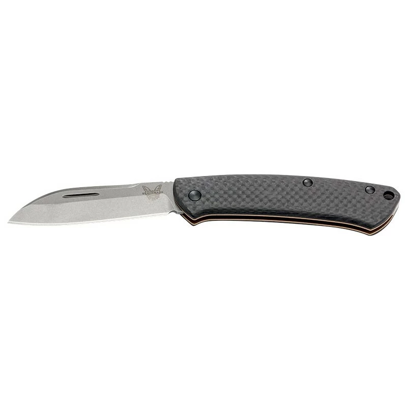 Le couteau Benchmade Proper 319_2 est doté d’un manche en fibre de carbone alliant résistance, légèreté et modernité. Très confortable à manipuler, le manche mesure 98mm de long ce qui permettra à l’utilisateur de pouvoir emporter facilement n’importe où son Benchmade Proper 319_2. Ce modèle dispose aussi d’une lame de 72mm en acier CPM-S30V offrant de très bonnes performances de coupe. Il ne faut pas oublier que la lame est personnalisable par gravure sur les deux faces (voir bouton ajouter une gravure ci-dessous). À noter qu’on peut apercevoir le logo Benchmade sur la face avant. Profil de la lame type Sheepsfoot, verrouillage de type slipjoint. Ce couteau de poche Benchmade Proper 319_2 conviendra parfaitement pour l’usage quotidien, la vie de tous les jours.