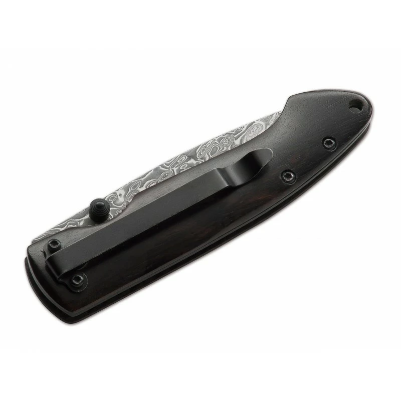 Le Böker Plus Damascus Gent 2 est une version plus petite, plus compacte, du couteau Damascus Gent 1. C’est ainsi qu’il propose un confort d’utilisation toujours plus grand tout en conservant les mêmes caractéristiques. Il possède une lame en acier damas 67 couches dotée d’une forte élégance : elle mesure 69mm de longueur et se verrouille de façon fiable par l’intermédiaire du liner lock. Elle peut être facilement déployée grâce au double thumb stud sur lequel le pouce vient s’appuyer. Le manche du couteau Böker Plus Damascus Gent 2 est fait de bois d’ébène au coloris sombre, sans oublier son clip foncé au dos à l’origine de la grande facilité de transport. C’est un couteau de gentleman qui brille par son style, son gabarit réduit mais aussi ses performances de haute voltige. Il n’a clairement rien à envier aux modèles plus grands !