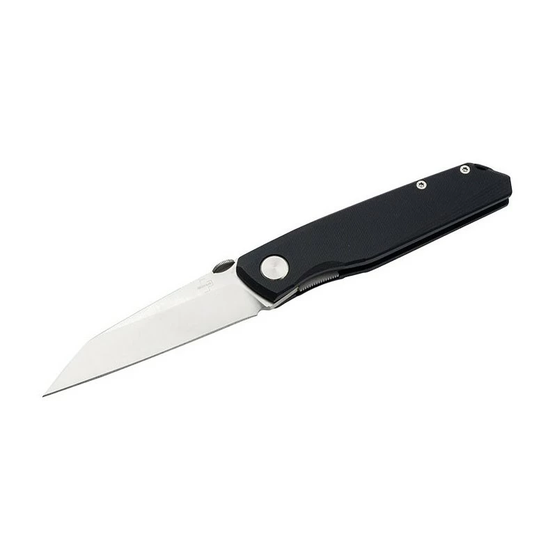 Le Böker Plus Connector G10 a été mis au point par le coutelier polonais Jakub Wieczorkiewicz que vous connaissez peut-être mieux pour ses créations conçues sous la marque Poltergeist Work. C’est un couteau EDC doté d’une lame Wharncliffe de 75mm de longueur, conçue en acier D2 de grande qualité. L’ouverture de la lame est réalisée de façon simple mais efficace via le bouton de pouce amovible, en douceur grâce au roulement à billes. Des jimpings à l’arrière améliorent la sûreté durant les travaux, le liner lock verrouille efficacement la lame.