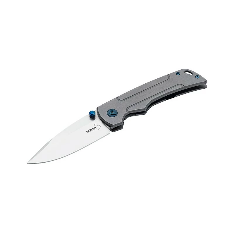 Le Böker Plus Gulo Pro 01BO781 se dote également d’un manche gris en acier, sublimé par des nuances bleues afin de conférer un aspect plus moderne, plus chaleureux. Bien sûr, il s’agit du même coloris utilisé que sur le thumb stud pour un ensemble plus harmonieux. La forme ergonomique du couteau assure une prise en main à la fois ferme et confortable, la longueur de 107mm garantit elle une facilité de port. Avec trou de lanière en bout et clip de poche tip-up bleu au dos.
