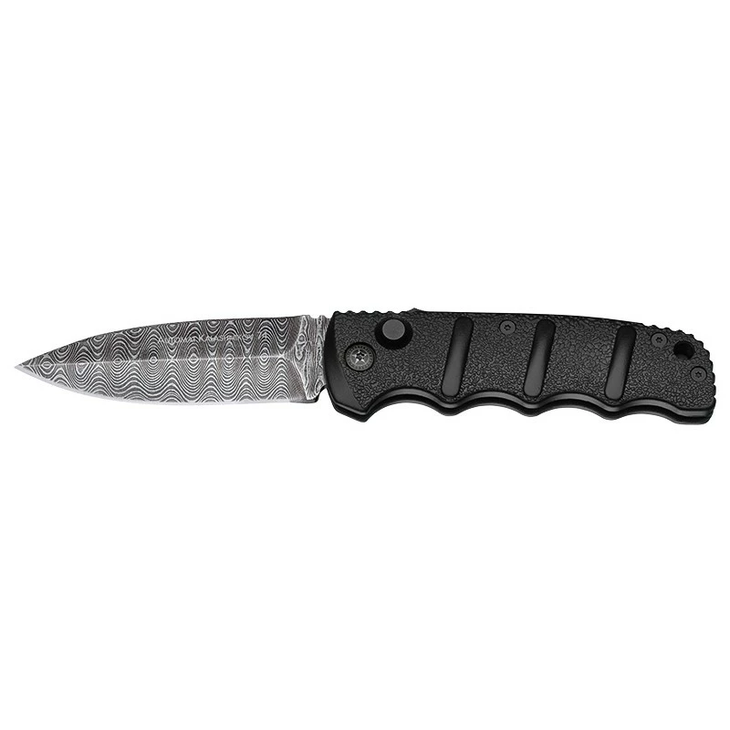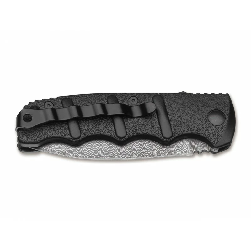 Le couteau Böker Plus 01KALS75DAM Damascus possède aussi un manche noir en aluminium avec textures surélevées pour une prise en main toujours très confortable. Résistant, le manche mesure précisément 11cm de longueur, cela permet de transporter ou ranger le couteau automatique avec énormément de facilité. Au dos du manche se trouve un clip noir qui confirme l’excellente transportabilité de ce couteau de poche Böker (coutellerie Allemande). Retrouvez toujours plus de couteaux automatiques en cliquant ici.