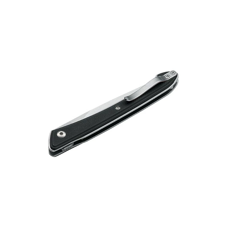 Le couteau pliant Spillo par Böker Plus possède également un manche noir en G10 texturé, dont la forme est légèrement incurvée pour toujours plus de confort lors de la prise en main. Il assure également un transport aisé au quotidien grâce à son petit gabarit (longueur de 10cm en position fermée) ainsi que son clip de poche détachable au dos. Le Böker Plus Spillo est un couteau gentleman qui se montre design, transportable et tranchant. Vous allez l’adorer !