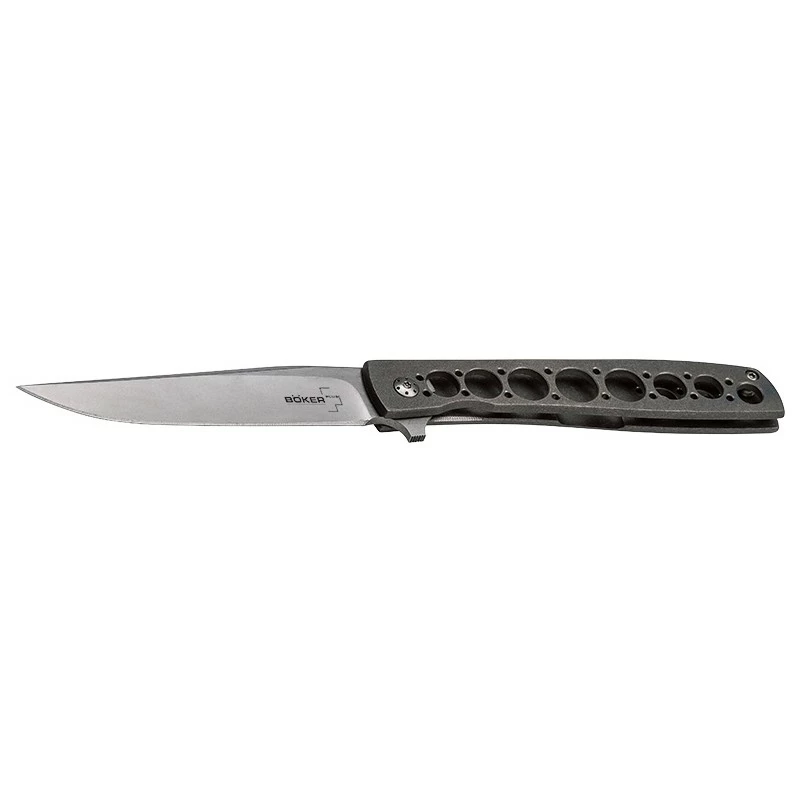 Toujours conçu par un certain Brad Zinker, le couteau Böker Plus Urban Trapper Grand voit sa lame se déployer grâce à un flipper manuel, en douceur via le roulement à billes. Présentant une finition satinée, elle se verrouille via un frame lock.