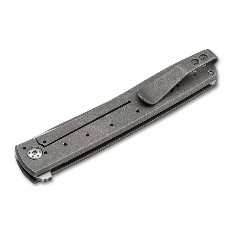 Ce modèle 01BO721 Böker Plus est conçu et designé par Brad Zinker. Il s’agit ici de la version « lame tanto » du couteau nommé Urban Trapper. La lame tanto, ici fabriquée en acier VG-10 et mesurant 86mm de longueur, confère un aspect plus agressif, plus percutant. Enrichie du logo Böker Plus en guise de décoration, elle s’ouvre par l’intermédiaire d’un flipper et se verrouille efficacement grâce au mécanisme liner lock.