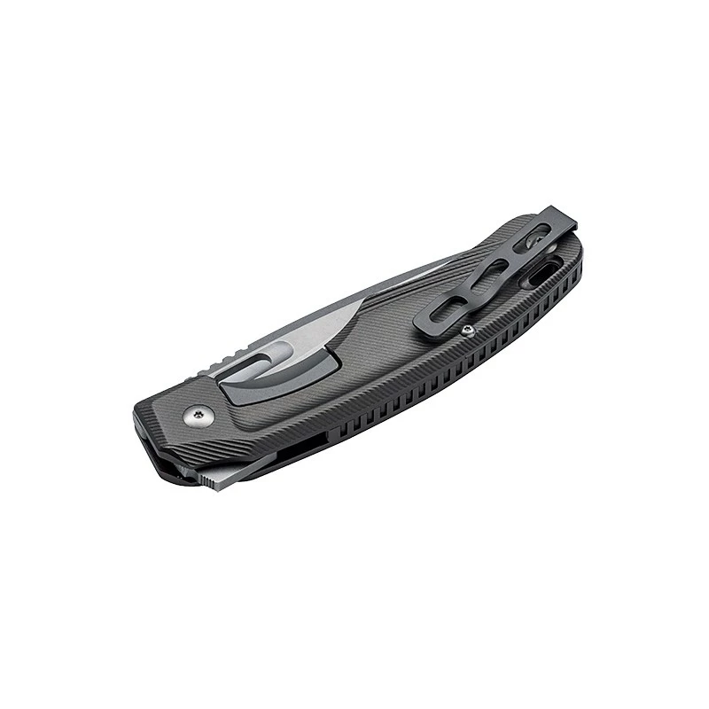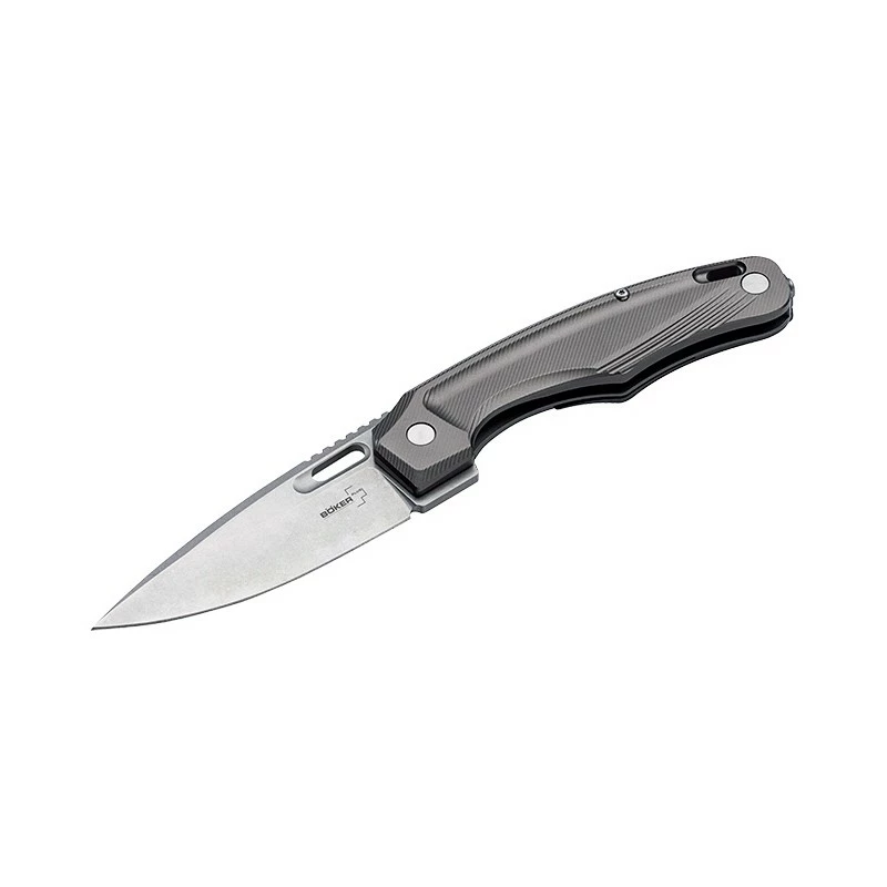Le Böker Plus Warbird est un couteau de poche Allemand conçu par le designer Boris Manasherov. Un modèle que vous apprécierez sans aucun doute pour sa belle poignée en aluminium, avec grandes échancrures sur les côtés afin d’offrir une excellente prise en main. Il est vrai que la position pour les doigts est très intuitive, à noter que la poignée coloris argent est aussi très légère. Elle intègre un trou de lanière en bout, ainsi qu’un clip de poche tip-up détachable au dos. Comme vous pouvez le constater, la transportabilité est loin d’être un problème !