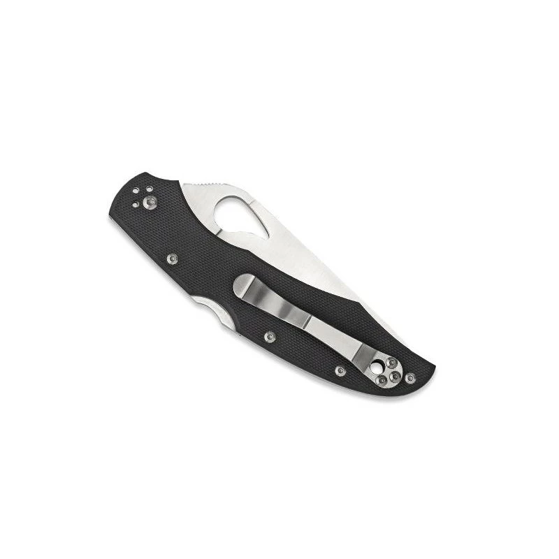 Tout est dans le titre, ce couteau Byrd Cara Cara 2 se dote d’un manche de couleur noir en G10, un matériau qui habille régulièrement les manches des couteaux pliants. Ce modèle portant la référence BY03GP2 sera facile à transporter du fait qu’il intègre un clip en inox au dos. Il dispose aussi d’une lame de 95mm fabriquée en acier inoxydable 8Cr13MoV : elle est à fond plat et à cran et ressemble beaucoup aux lames des couteaux Spyderco de part son trou placé au même endroit. Il faut d’ailleurs préciser le fait que les couteaux Byrd sont fabriqués en Chine sous le contrôle de la marque Américaine Spyderco, de quoi baisser les coûts et toucher un public plus large.