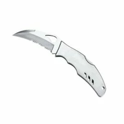 Le Byrd Crossbill est un couteau pliant fabriquĂ© en Chine sous le contrĂ´le très strict de la marque AmĂ©ricaine Spyderco. Un modèle que l’on reconnaĂ®t assez facilement de part sa lame Ă dents de 89mm en acier 8Cr13MoV en forme de bec d’oiseau. Ă€ noter que cette forme de lame est utilisĂ©e dans le milieu de l’industrie maritime pour maintenir la corde par exemple. On remarque aussi que la lame est munie d’un trou en forme de comète, un trou qui rappelle les couteaux Spyderco. Sinon on retrouve Ă©galement un manche de longueur 120mm fabriquĂ© en acier inox avec clip au verso garantissant des dĂ©placements toujours très aisĂ©s. Le couteau pliant Byrd Crossbill sera ainsi en permanence Ă vos cĂ´tĂ©s !