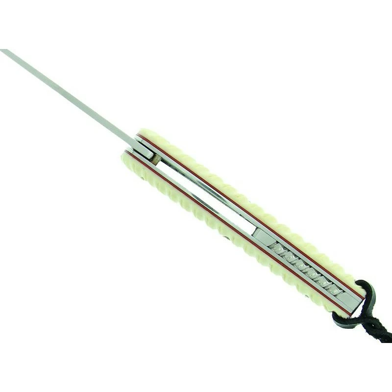 Le Citadel Kampot 63120 est un couteau de poche fabriquĂ© artisanalement : c’est un modèle de très bonne facture. Et son appellation « couteau de poche » ne doit rien au hasard, c’est parce que son manche mesure 11cm de longueur, autant dire qu’il tiendra sans problème dans toutes les poches, mĂŞme les plus petites. Robuste, le manche est aussi très Ă©lĂ©gant : il est fabriquĂ© en os de buffle blanc avec intercalaire rouge. Ă€ noter que le manche est aussi qualifiĂ© de « zebra » en raison de ses nombreuses rayures dĂ©coratives. Un lacet noir est Ă©galement prĂ©sent pour pouvoir accrocher n’importe oĂą le couteau Citadel Kampot 63120, un lacet très pratique lors des sorties Outdoor. CĂ´tĂ© lame, pas de surprise, elle est encore une fois conçue en acier inoxydable N690Co, c’est l’acier le plus utilisĂ© chez la coutellerie Citadel. Ce couteau est livrĂ© avec sa pochette en nylon très pratique lors des transports.