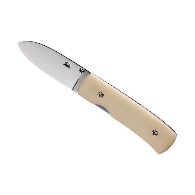 Ce couteau Citadel STAVANGER rĂ©fĂ©rence 63115 est dotĂ© d’une lame tranchante Ă cran intĂ©rieur et Ă bouton conçue en acier inoxydable N690Co. La lame est dĂ©corĂ©e par le logo Citadel et vous pouvez Ă©galement ajouter la gravure du texte de votre choix (contre supplĂ©ment de 8,90€). FabriquĂ© 100% artisanalement, ce couteau Citadel Stavanger intègre aussi un joli manche en os de buffle blanc avec intercalaire rouge. EsthĂ©tique, le manche est aussi relativement simple Ă transporter au quotidien du fait qu’il ne mesure que 9,5cm de longueur. Ce couteau Citadel 63115 pourra se glisser facilement dans toutes les petites poches et sera ainsi toujours Ă portĂ©e de main lors des dĂ©placements et mouvements. Couteau pliant livrĂ© avec sa pochette en nylon pour le transport.