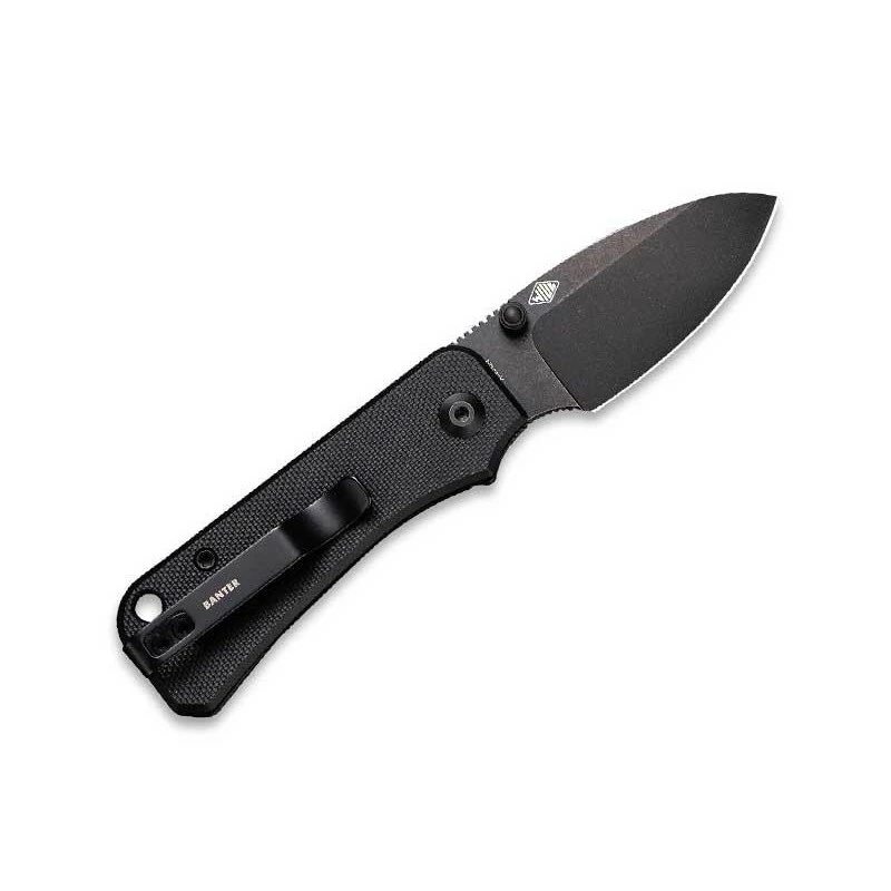 Le manche du couteau Civivi Baby Banter C19068S2 est conçu en acier inoxydable surplombé par des plaquettes de couleur noire en G10. Ce matériau n’a pas été choisi au hasard, il est à la fois robuste, léger, et ergonomique. C’est le matériau à la mode en coutellerie de poche ! La facilité de port sera toujours au rendez-vous puisque le manche mesure environ 8cm de long, il comprend même un clip noir où figure l’inscription Banter écrite à l’aide d’une couleur contrastée. Le couteau est livré dans une pochette en nylon noir afin de ne pas l’abîmer durant son transport.