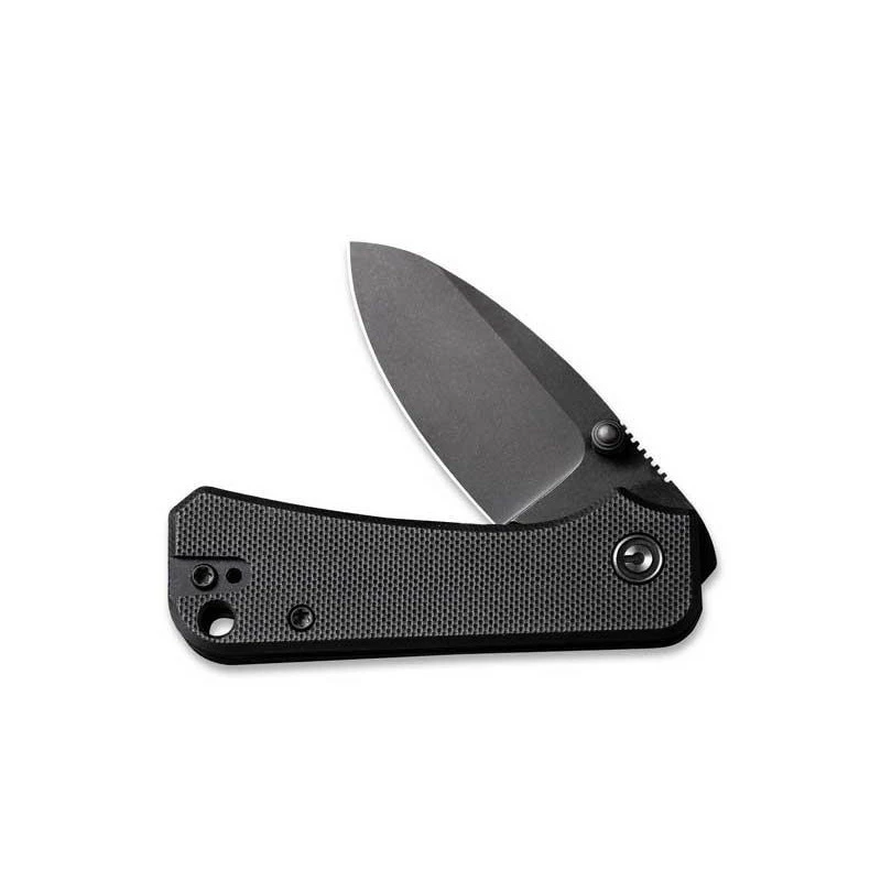 En coutellerie, le noir est une couleur très utilisée car elle allie la sobriété et l’élégance. Pour la conception du Baby Banter Civivi, le designer Ben Petersen a justement eu recours à ce coloris. La lame en acier Nitro-V présente une finition blackwash ou encore noire avec finition stonewashed si vous préférez, cela revient au même. Mesurant à peine 6cm de longueur, elle est agrémentée d’un double bouton de pouce en titanium 6AL4V permettant de la déployer facilement en toutes circonstances. Le liner lock assure un verrouillage sûr et fiable tandis que le ball bearing (roulement à billes) apporte de la fluidité au moment des ouvertures/fermetures.