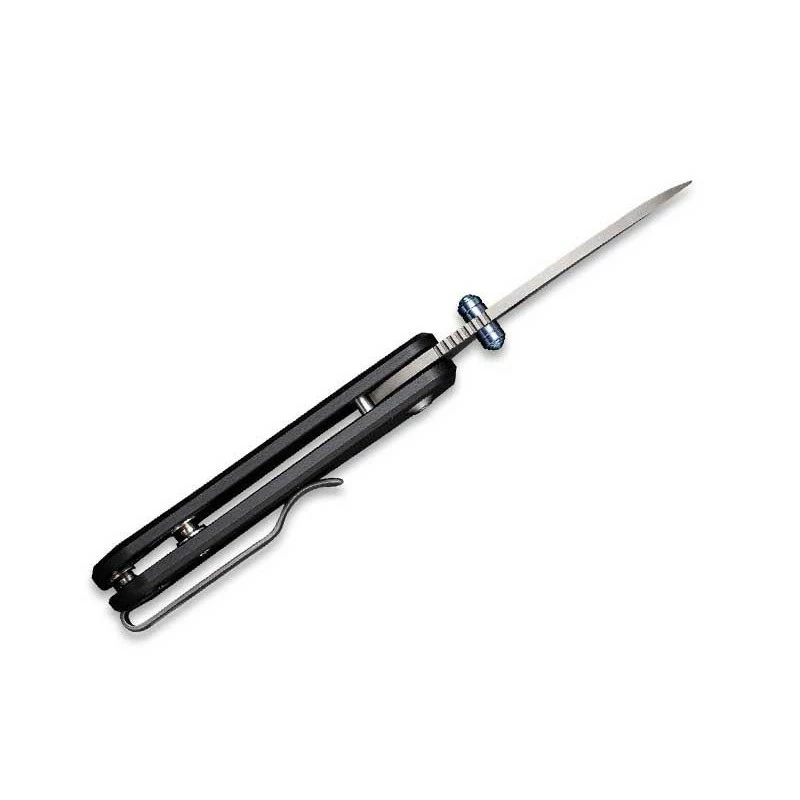 Ce modèle Civivi C19068S1 diffère des autres couteaux Baby Banter par sa lame en acier Nitro-V, mais qui prĂ©sente ici une finition stonewashed. De couleur grise, elle comporte donc une finition dĂ©lavĂ©e pierre qui en plus d’apporter du charme, permet de masquer les rayures. La lame n’a pas fini de vous en mettre plein la vue puisqu’elle est enrichie d’un double thumb stud en titanium 6AL4V bleu. Si ce dernier contribue au design du couteau, il est surtout Ă l’origine d’une excellente ergonomie avec une facilitĂ© d’ouverture remarquable. Une ouverture qui sera toujours fluide et douce grâce au roulement Ă billes, le liner lock lui fait en sorte que le verrouillage de la lame soit fiable.