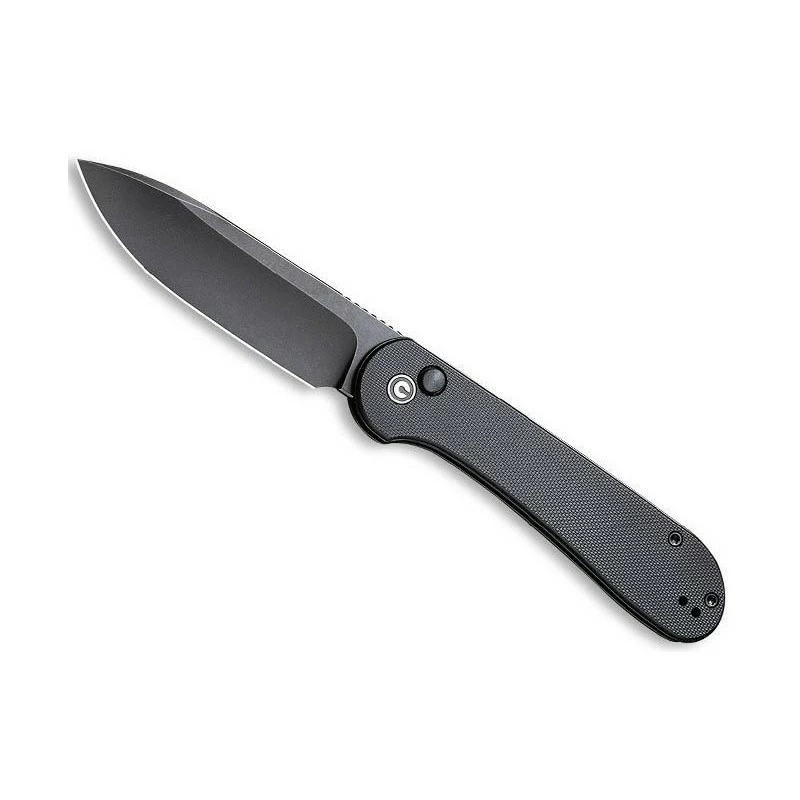 Le couteau Civivi C2103A va beaucoup plaire, sa particularitĂ©, c’est son design entièrement noir pour une allure des plus sobres mais Ă©lĂ©gantes. Il s’agit du modèle Button Lock Elementum constituĂ© ici d’un manche mesurant 115mm en acier inoxydable noir avec plaquettes en G10 noir. Simple Ă transporter grâce Ă son clip noir, la poignĂ©e est dĂ©corĂ©e par le logo Civivi, elle comprend Ă©galement le « Button Lock », Ă savoir un bouton de verrouillage/dĂ©verrouillage. La lame est de couleur noire en raison de sa finition blackwash, elle est fabriquĂ©e en acier 14C28N et s’ouvre de façon fluide grâce au mĂ©canisme Ball Bearing. Pour transporter votre couteau Civivi Button Lock G10 noir sans jamais l’abĂ®mer, vous pourrez compter sur la pochette en nylon noir qui vous sera livrĂ©e en plus du couteau. PossibilitĂ© de personnalisation par gravure en supplĂ©ment.