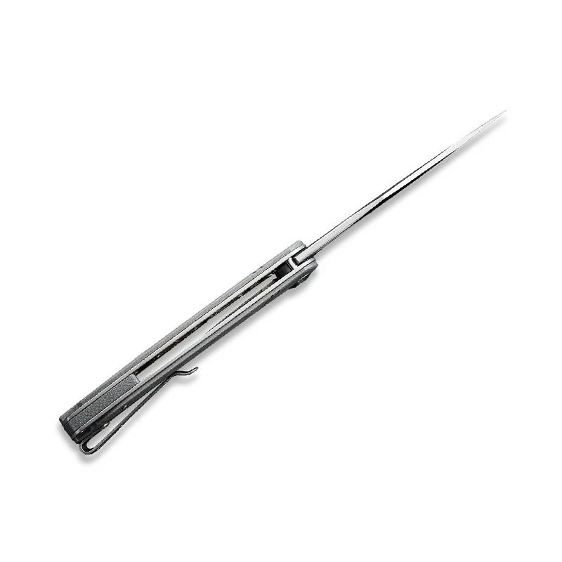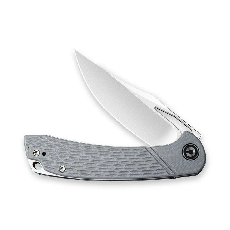 Le Dogma est un couteau pliant Civivi caractĂ©risĂ© par une lame de type clip-point ainsi qu’un manche (et entretoise) en G10, texturĂ© pour un style toujours plus moderne. Sur ce modèle C2005B, la poignĂ©e est en G10 coloris gris, toujours avec la prĂ©sence du logo Civivi blanc sur noir (contraste optimal). Le manche mesure 11cm de long, et intègre un clip en acier inox ajourĂ© au dos, tout cela permettant Ă l’utilisateur de pouvoir transporter son couteau Civivi Dogma avec Ă©normĂ©ment de facilitĂ©. Note importante : en passant commande, vous recevrez le couteau, mais aussi une pochette en nylon noir idĂ©ale pour le rangement mais aussi la protection.