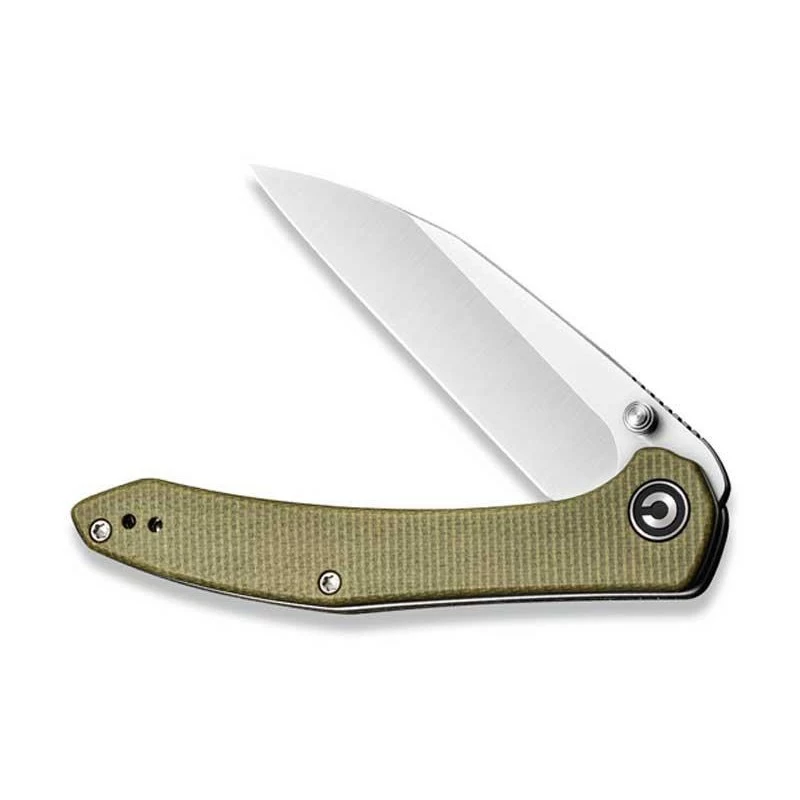 Le modèle C200043, Civivi Hadros, a un manche en acier inoxydable gris recouvert de plaquettes en micarta coloris vert olive. Rappelons qu’il s’agit d’un matĂ©riau composite aux propriĂ©tĂ©s plus qu’intĂ©ressantes : rĂ©sistance aux chocs ainsi qu’Ă l’humiditĂ©. La longueur de 105mm de la poignĂ©e couplĂ©e au clip permet de pouvoir transporter toujours très facilement le couteau Civivi Hadros vert olive. Disponible en d’autres coloris.