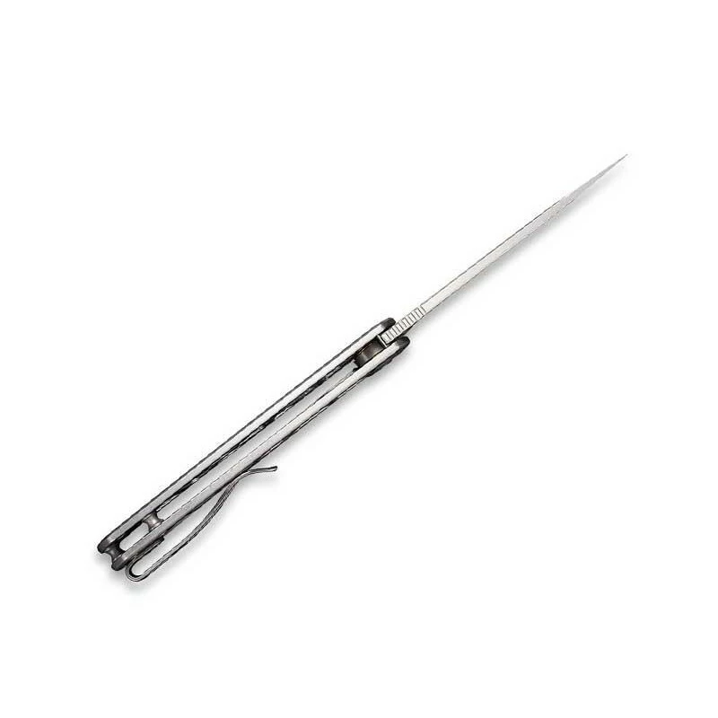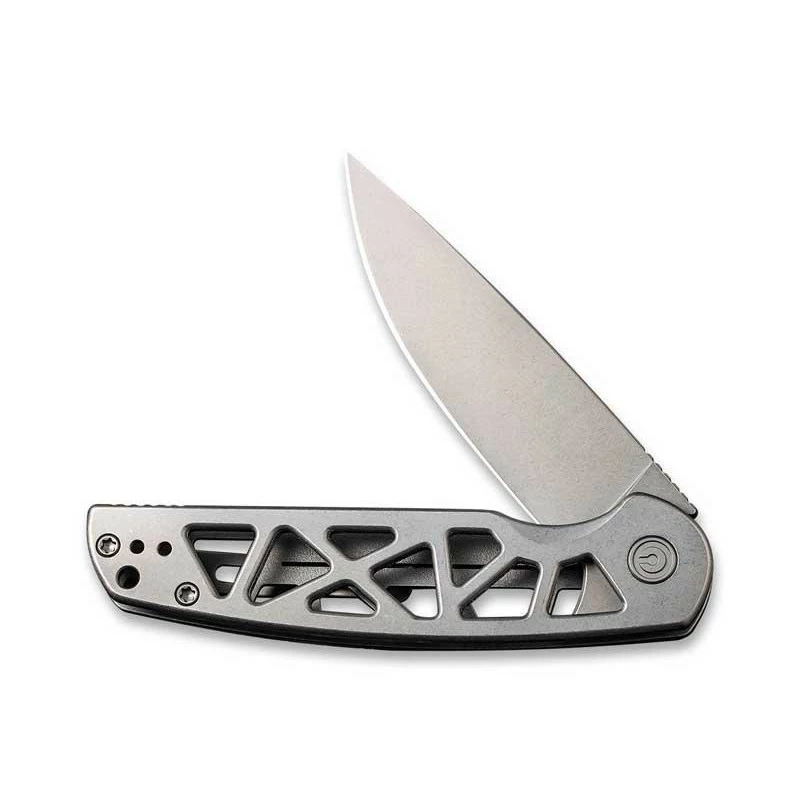 Le Civivi Perf est un couteau pliant à verrouillage frame lock qui ne vous laissera certainement pas indifférent par son style original et moderne. Fait d’acier inoxydable gris, son manche de 10cm de longueur est largement ajouré par des motifs géométriques aux bords arrondis. Tout cela contribuant bien sûr au fort esthétique global du couteau ! Comportant un clip de transport au dos, le manche est enrichi du logo Civivi où la lettre C se fond dans la masse pour une harmonie parfaite.