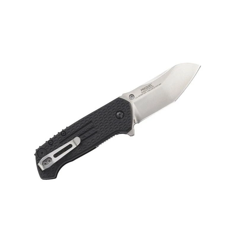 Le CRKT Prequel est un couteau pliant qui intègre la technologie FIELD STRIP. En d’autres termes, il est démontable/remontable à souhait, sans outil, ce qui permet de le nettoyer dans le moindre recoin. Ainsi votre couteau favori sera toujours dans un état impeccable, même suite à de nombreuses utilisations, manipulations. Le Prequel CRKT possède un manche de 10cm de long, en nylon et fibre de verre coloris noir, gage de robustesse au quotidien, n’ayez pas peur de l’utiliser ! Sa longueur permet de le transporter de façon simple et efficace, il y a de toute façon un clip de poche au niveau de la face arrière de la poignée. Il n’est pas prêt de quitter votre proche de si tôt ! Le Prequel possède également une lame fabriquée en acier 8Cr14MoV à la finition satinée, avec flipper pour l’ouverture à une main, ainsi qu’un thumb stud ou encore bouton de pouce si vous préférez. Tout cela fait que les utilisations quotidiennes sont simples et efficaces.