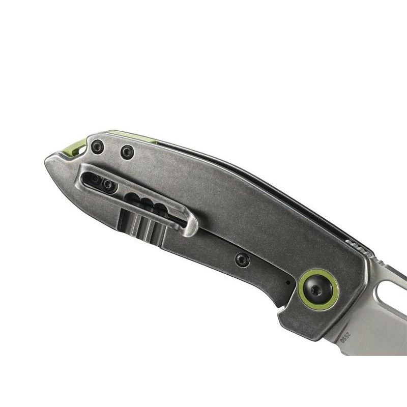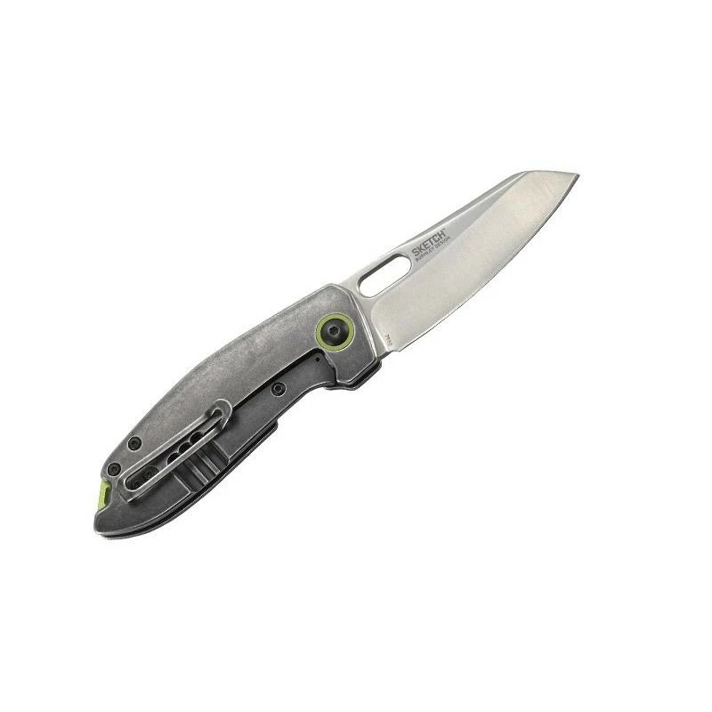 Avec le Sketch CRKT de Lucas Burnley, vous aurez toujours à disposition, lors des déplacements, un couteau pliant performant et efficace sur qui compter. Conçu par Lucas Burnley, designer talentueux localisé en Oregon, le Sketch 2550 possède une lame à la finition satinée en acier 8Cr14MoV riche en carbone. À verrouillage frame lock, cette dernière comprend un large trou, elle est parfaite pour travailler, gratter, couper l’isolation … Si cela vous intéresse, n’oubliez pas de graver la lame en cliquant sur le bouton ajouter une gravure que vous trouverez plus bas. Le couteau CRKT Sketch possède ici un manche en acier inoxydable 2Cr13 à la finition blackwash, on observe aussi un pivot ainsi qu’une entretoise anodisé vert, ce qui ajoute une touche colorée, et donc une note de gaieté. Pour que le transport ne soit jamais un problème, le manche mesure 10cm de long, et intègre au dos un clip de poche.