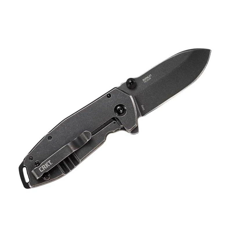 La rĂ©fĂ©rence 2493 de la marque AmĂ©ricaine Columbia River Knife & Tool correspond Ă la version blackwash du couteau Squid Assisted. Rappelez-vous, il s’agit d’une rĂ©alisation du cĂ©lèbre designer Lucas Burnley localisĂ© en Oregon. FabriquĂ© intĂ©gralement en acier inoxydable (8Cr14MoV pour la lame, 2Cr13 pour le manche), cet EDC a une finition noire blackwash sur l’ensemble ce qui lui vaut une bonne rĂ©sistance Ă la corrosion et un parfait masquage des rayures. Le Squid Assisted Blackwash intègre un système d’ouverture assistĂ© avec flipper et double thumb stud, le dĂ©ploiement est associĂ© Ă un roulement Ă billes pour une ouverture fluide et douce. Le verrouillage est assurĂ© par un mĂ©canisme frame lock. MarquĂ©e par l’inscription CRKT de couleur contrastĂ©e, la lame est facilement rĂ©affĂ»table pour un tranchant performant oĂą vous voulez, quand vous voulez.