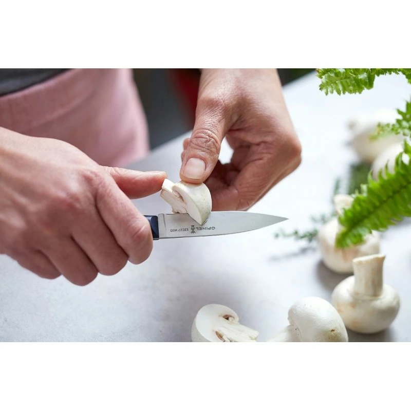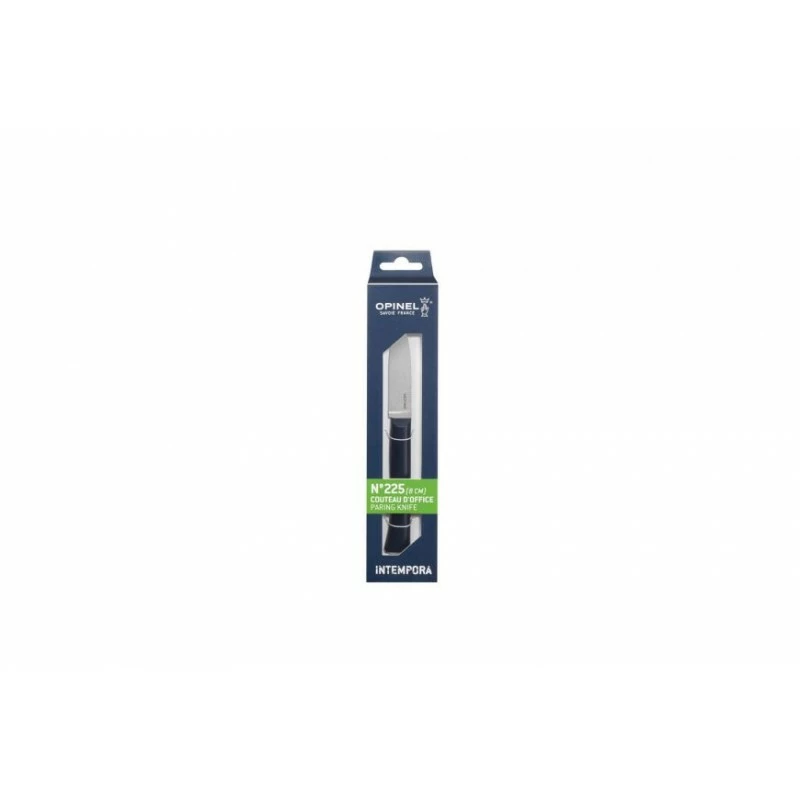 Que ce soit pour éplucher, émincer, peler ou trancher les fruits et légumes, ou encore parer les viandes, l’Opinel Intempora n°225 fera parfaitement l’affaire. C’est un couteau d’office, qui par définition, possède une courte lame de 8cm de long, à bout pointu. Une lame qui est fabriquée en acier inoxydable 12C27 modifié de Sandvik, avec à la clef un excellent tranchant et une très bonne résistance à la corrosion. À noter que la lame est décorée par le logo Opinel (marque Française) ainsi que par le type d’acier utilisé, ici le 12C27.