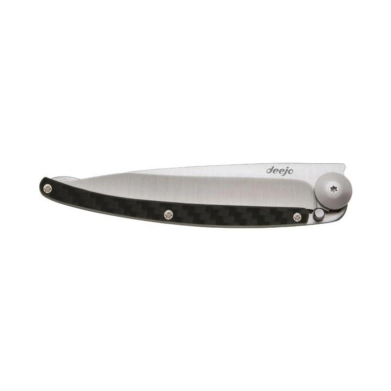 Ce couteau Deejo Composite référence 1CC001 se reconnait facilement de part son manche squelette en acier inoxydable avec habillage en fibre de carbone noire. Dotée d’une très grande résistance, la fibre de carbone est également très appréciée pour son élégance. Le manche mesure exactement 11cm de longueur, de ce fait, le couteau Deejo Composite se transportera avec beaucoup de facilité, d’autant plus que le poids total du couteau est de 37 grammes. La lame de 9,5cm elle est fabriquée en acier inoxydable 420 finition mat, elle bénéficie d’un tranchant lisse de grande qualité. L’ouverture est très sécurisée grâce au très célèbre mécanisme Liner Lock, possibilité de personnaliser la lame par le texte de votre choix (voir bouton ajouter une gravure). Un couteau pliant léger, élégant et très performant ! Avec clip de ceinture.