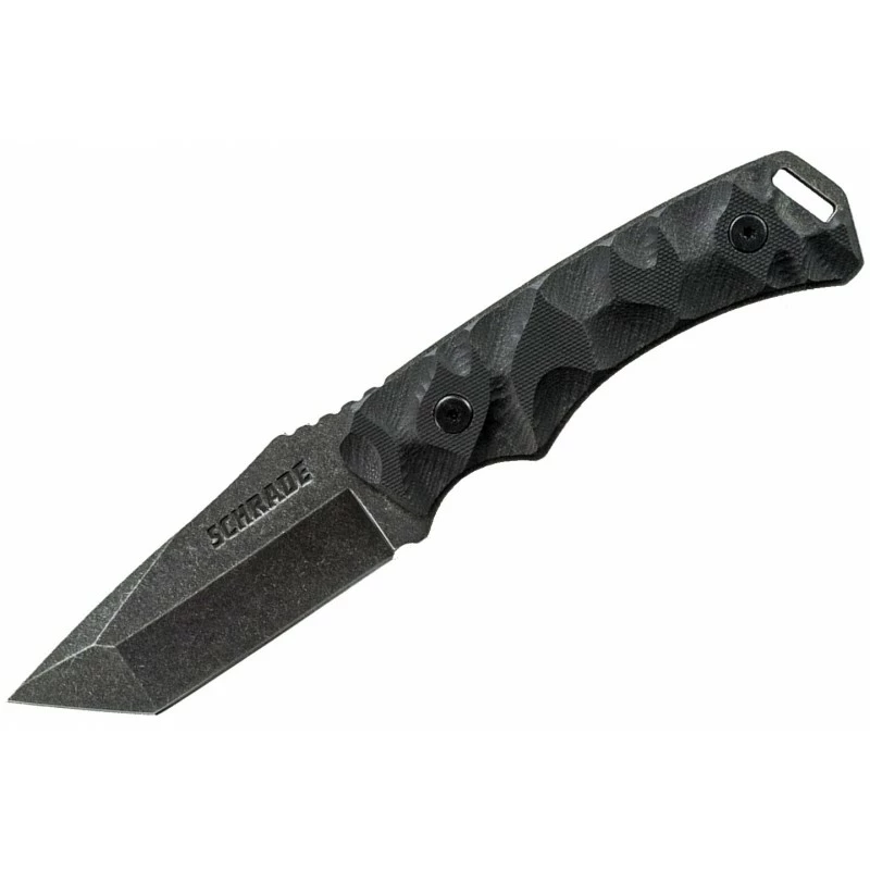 Le SCHF15, signé Schrade, est un couteau fixe idéal pour la survie ou le bushcraft. Il possède une lame de forme tanto, à la construction pleine soie (full-tang), garantissant force et solidité au quotidien. D’une longueur de 86mm, la lame est fabriquée en acier 8Cr13MoV à haute teneur en carbone. Elle présente une finition blackwash et s’avère être marquée par l’inscription « SCHRADE ».