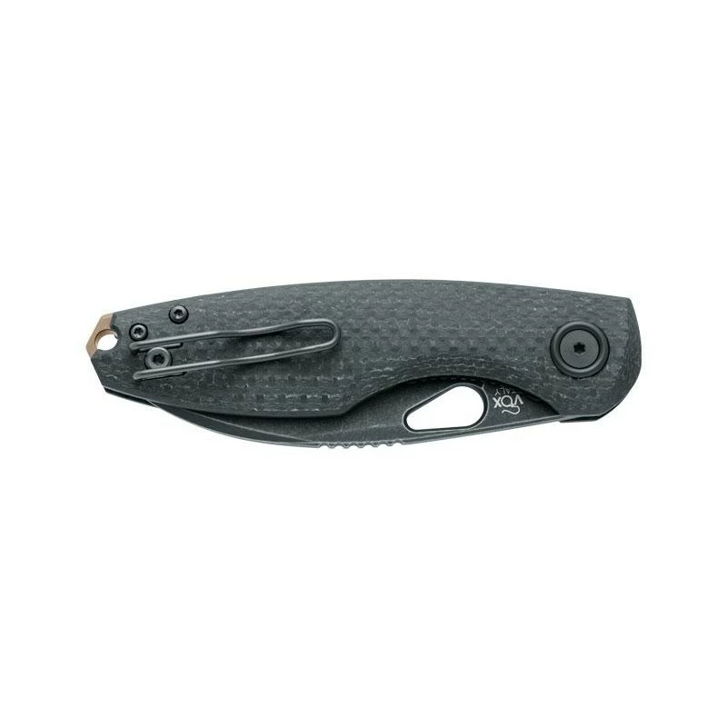Le manche en fibre de carbone assure une prise en main confortable, même lors de l’utilisation prolongée du couteau. Le clip réversible facilite le transport du couteau. Avec une longueur de lame de 8 cm et une longueur totale de 19 cm, le couteau est suffisamment compact pour être facilement transporté.