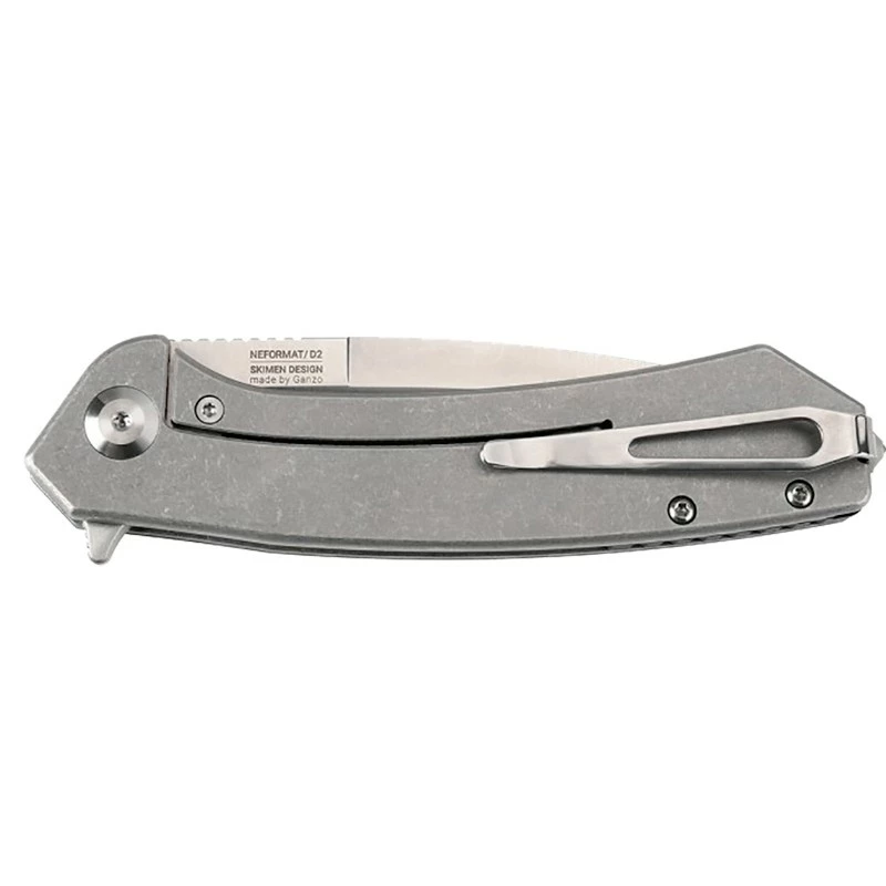 Le Ganzo Skimen GSKIMENRD possède bien entendu une lame, de forme drop point, mesurant prĂ©cisĂ©ment 85mm de long, ni plus, ni moins. Elle est fabriquĂ©e en acier D2, un acier tranchant rĂ©putĂ© pour sa rĂ©sistance Ă la corrosion ainsi qu’Ă l’usure. N’oubliez pas que la lame est personnalisable par gravure sur les deux faces, elle est d’ailleurs dĂ©corĂ©e sur la face avant par le nom de la sĂ©rie, ici Adimanti. Très simple d’utilisation, la lame peut ĂŞtre rapidement dĂ©ployĂ©e par le biais du flipper, le système de verrouillage est ici de type liner lock.