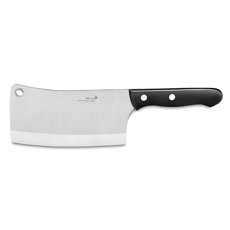Hacher les herbes, briser les os des viandes, voici les actions qu’il sera possible de réaliser avec le couperet hachoir Sherwood signé Déglon, célèbre marque Française. Pour que les découpes soient aisées, le couteau possède une lame couperet de 16cm de long, en acier X46Cr13, un acier inoxydable qui résiste parfaitement à la corrosion/rouille. Une lame au gabarit imposant, ajourée par un trou au niveau du coin supérieur, et décorée par le logo Déglon, possibilité de personnalisation par gravure.