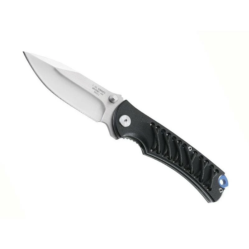 Doté de la référence 205211, ce couteau de poche Herbertz a une allure très originale et moderne de part son manche noir en G10 avec lacet incorporé. Facile à transporter, ce couteau pliant ne mesure que 11cm de longueur, il pourra ainsi se loger facilement dans une petite poche. Ce modèle dispose également d’une lame tranchante en acier 420 à cran intérieur et à bouton double. De plus, vous pouvez également personnaliser ce couteau Herbertz 205211 au niveau de la lame : à vous de choisir le texte de votre choix.