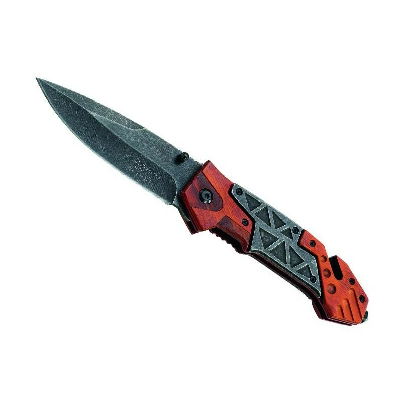 Ce couteau de poche Herbertz référence 236013 se dote d’un manche de longueur 12,5cm en bois pacca avec inserts inox : il est vraiment magnifique. En plus d’être beau, le manche est également très pratique puisqu’il intègre un pic brise-vitre et un coupe-ceinture de sécurité, le top pour intervenir lors des missions urgentes où chaque seconde est comptée. Grâce au clip de poche, transporter ce couteau pliant Herbertz au quotidien sera un jeu d’enfants !