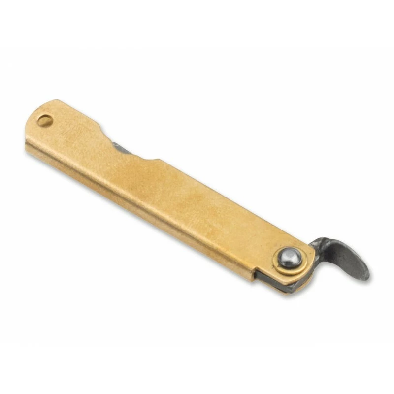 Le couteau Higonokami Bonsai Hoseki Damascus de chez Böker (référence 01PE321) est caractérisé par un sublime manche en laiton ainsi qu’une lame damas. L’autre chose frappante, c’est sa petite taille d’environ 9cm en tout, ainsi que 5cm en position fermée, vous permettant ainsi d’emporter ce petit bijou partout. Le manche en laiton est enrichi de sigles Japonais ainsi qu’un trou pour cordon (passe-lacet), la prise en main est agréable.