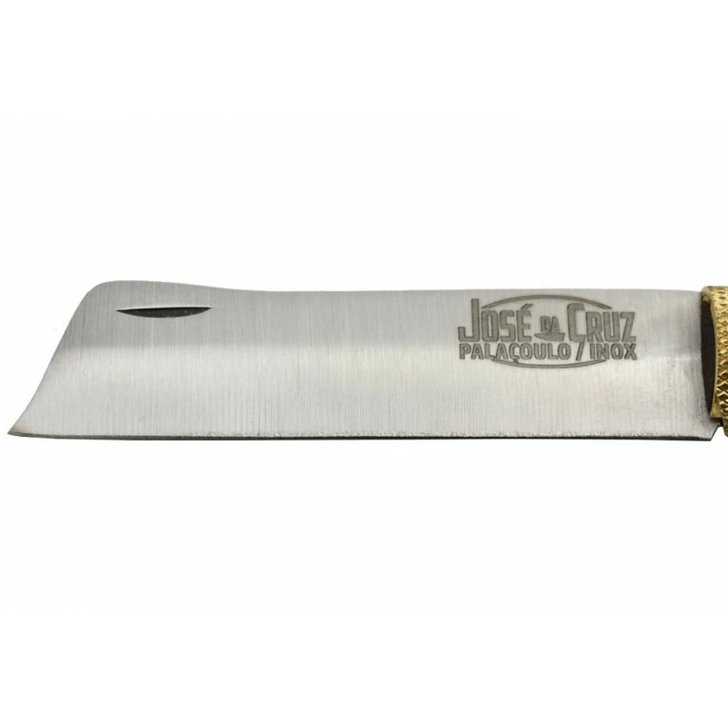 Côté tranchant le JDC13 ne vous décevra pas, c’est une certitude. Il intègre une lame de forme sheepfoot (pied de mouton) conçue en acier inoxydable afin de ne pas craindre la corrosion. De 85mm de long (épaisseur 1,8mm), elle se déploie via l’entaille positionnée à l’avant, au niveau de la pointe. Grâce à la virole tournante en laiton moletée, vous pourrez utiliser la lame de façon sûre. Marquée par le logo José Da Cruz Palaçoulo inox, n’oubliez pas que vous avez la possibilité de la graver par vos propres inscriptions. Couteau livré dans une boîte cartonnée.