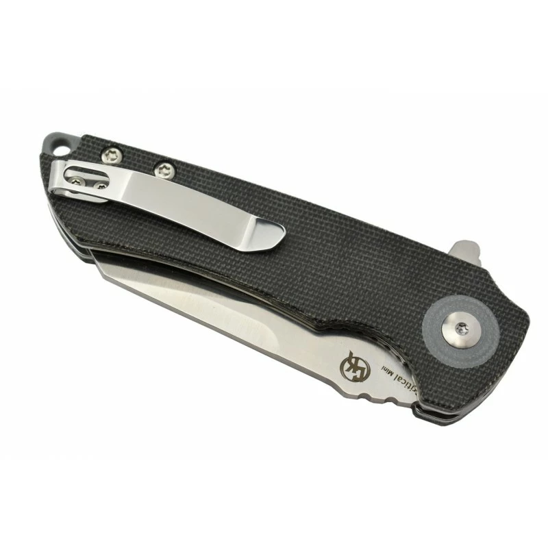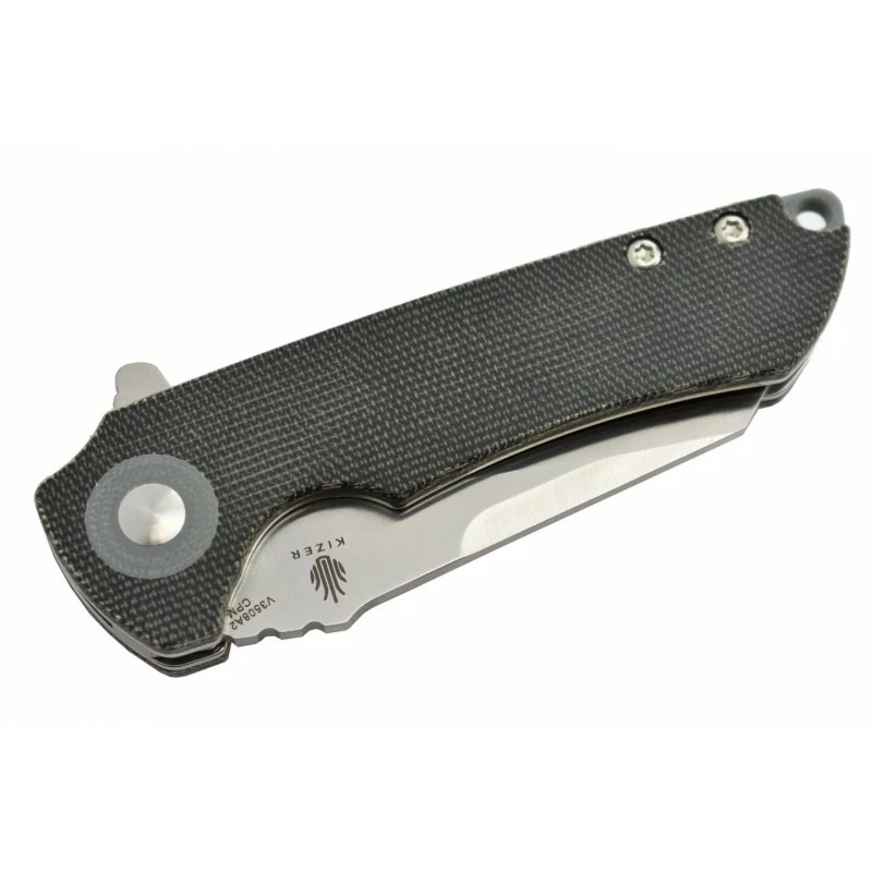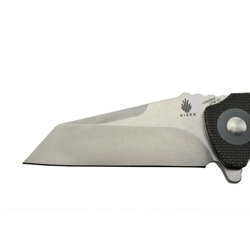 Mesurant 11cm de long une fois fermé, ce Kizer Critical Mini se transporte quotidiennement sans grande difficulté. Une transportabilité qui est améliorée du fait de la présence d’un trou de lanière en bout de manche. Ce dernier est d’ailleurs fait de micarta noir avec intercalaires en acier, sans oublier le clip au dos. Sa forme favorise la préhension, un enjeu important au moment de devoir choisir un couteau de poche.
