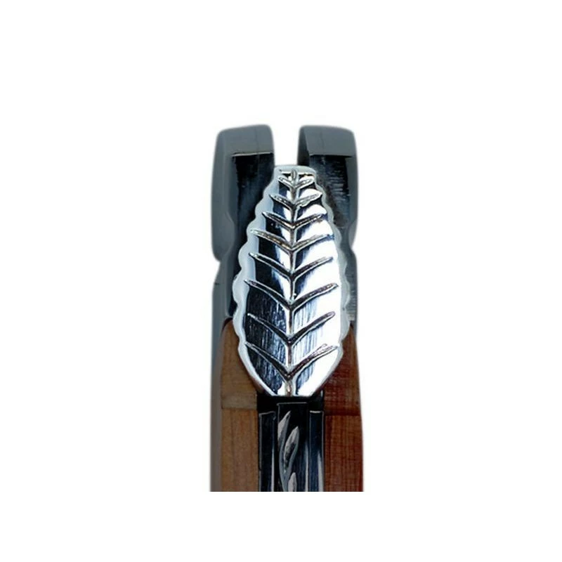 La Corrèze est un département de la région Française Nouvelle-Aquitaine, avec des villes comme Tulle ou encore Brive-la-Gaillarde. Faites-plaisir aux Corréziens amateurs de coutellerie en leur offrant ce couteau pliant Le Correze, modèle 1452. Il possède un manche mesurant 12cm de long, conçu en bois genévrier, avec ressort guilloché et sa feuille de châtaignier. Le couteau de poche dispose aussi d’une lame en acier inoxydable Z100 sur laquelle on peut voir l’inscription gravée « Le correze » au recto ou face avant si vous préférez. Gardez bien en tête que vous pouvez personnaliser le dos de la lame par le texte de votre choix, qui vous fait plaisir, ou qui fera plaisir à celui ou celle qui recevra le couteau en cadeau. Une mitre est présente en acier inoxydable mat, elle fait la jonction entre la lame et le manche genévrier.