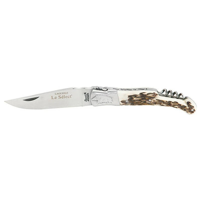 Le Robert David « Le Sélect forgé« , modèle DS0612CE, est un couteau de poche pliant, qui va beaucoup plaire. Il possède un magnifique manche en bois de cerf, un matériau noble qui fera notamment le bonheur des chasseurs, passionnés de chasse. De forme ergonomique pour un confort de prise en main maximal, le manche bois de cerf intègre aussi un tire-bouchon, afin de pouvoir ouvrir les bouteilles très facilement. Simple, élégant, et tellement pratique à l’usage !