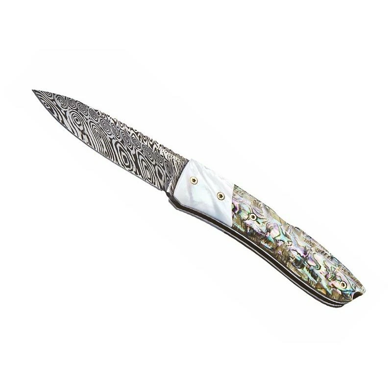 Ce couteau de poche LionSteel Opera référence 8800D.MOP atteint le summum de l’originalité et de l’élégance grâce à son manche en abalone de longueur 10cm avec mitre nacre. L’abalone est un matériau très rarement utilisé en coutellerie et c’est justement la principale force de ce couteau LionSteel de fabrication Italienne. À l’instar du manche, la lame est elle aussi ornée de nombreux motifs décoratifs, à bout pointu, elle est conçue en acier damas inox à cran. Sans doute l’un des aciers les plus hauts de gamme à l’heure actuelle sur le marché. Avec un design à couper le souffle, ce couteau pliant LionSteel Opera Damas Abalone nacre 8800D.MOP séduira sans aucun doute bons nombres de collectionneurs. Un modèle d’exception livré en coffret bois.