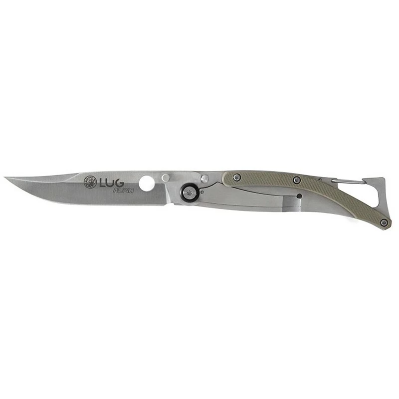 Designé et assemblé en France, le couteau LUG ALPIN SP1SD vous permettra de toujours avoir sous la main, lors de vos excursions, un petit outil moderne extrêmement tranchant. De longueur 8cm, la lame clip point est ici fabriquée en acier inoxydable 7Cr17MoV (0,7% carbone / 17% chrome / moybdène-vanadium). Ajourée, elle intègre un thumb stud, autrement dit un bouton sur lequel le pouce vient s’appuyer pour assurer l’ouverture de la lame. Enrichie du logo Lug ainsi que l’inscription « Lug Alpin », la lame est personnalisable par gravure en supplément.